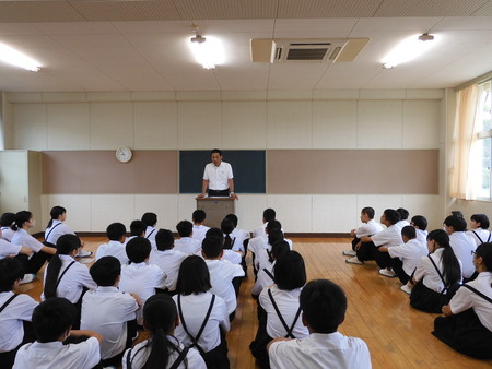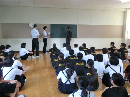 - 7月9日(水)に、ALTのお別れ集会を行いました。ALTのお別れの挨拶や生徒代表の感謝の言葉があり、名残惜しくも心温まる集会となりました。母国でのご活躍をお祈りしています。