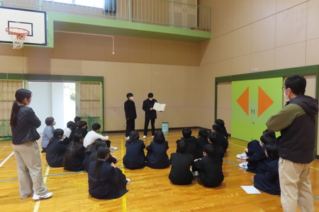 - 2月17日(火)〜19日(木)までの3日間、県立猶興館高等学校の高校生2名がインターンシップで教員の仕事の体験を行いました。1学年と2学年に配属され、授業の参観や生徒との交流を行いました。