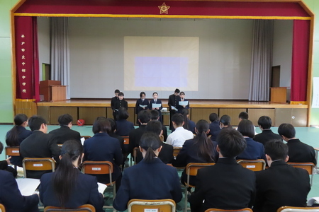 弁士の生徒は、身近なできごとや課題としていることなど、多面的に視野を広げ発表しました。また、聞き手の生徒も真剣に弁士の発表を聞いていました。