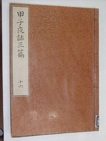 第34代清(静山)は、学問を奨励した大名として知られ、隠居後は江戸に滞在し、江戸幕府大学頭林述斎と交流していました。彼の勧めにより、文政4年(1821)霜月甲子の夜より原稿を起こしたとされ、これをとって同書の表題が付けられたとされています。天保12年(1841)に82歳で没するまで、278冊、約7000項目について書き継がれました。