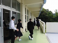 生徒たちは実際に避難することで、基本的な経路と避難の仕方を確認しました。