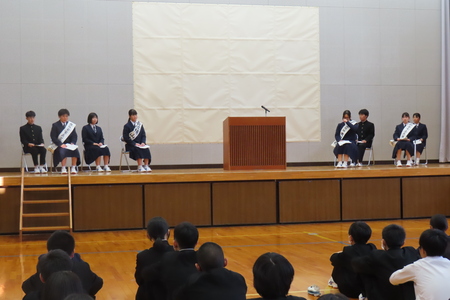 各学年代表生徒が3学期に向けての目標や諸活動で頑張りたいことなどを発表しました。