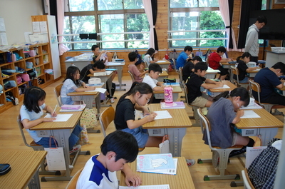 4年生は、百マス計算に取り組んでいます。百マス計算は、基礎的な四則計算の力を高めるとともに、書く力や集中力も養われます。高学年になると、計算力や語彙力の差がそのまま学力の差となって出てきます。学校の多くの時間は授業です。授業が理解できないと、授業中に遊ぶ、他の人に迷惑をかけるなどの行動へつながり、結局は学校生活が楽しくなくなってしまいます。楽しく学習するには基礎学力は不可欠です。毎日少しずつ取り組み、力を付けていきます。