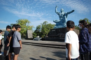 6年生の修学旅行紹介、その4です。修学旅行2日目は、平和学習からスタートしました。平和祈念公園で、平和集会を行った後、平和ガイドの方から、説明を受けながら、爆心地公園、原爆資料館で学びました。毎年、平和学習はしていますが、あらためて原子爆弾の恐ろしさ、平和の大切さを感じることができました。疑問に思うことを質問しながら、平和ガイドの方から、詳しく話を聞き、たいへん深い学びとなりました。