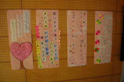 どの学級も日頃の生活をふり返り、よく考えていました。思いやりややさしさ等、心が温かくなる言葉がたくさんです。ぜひ、実践してほしいと思うものばかりでした。