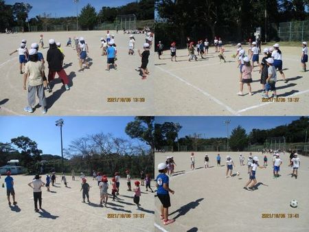 - 10月19日に3回目の共遊を実施しました。当日も前回と同様に天気にめぐまれ、子どもたちは気持ちよく汗を流している様子でした。また、今回は遊びの内容を6年生がインターネットを使って調べ企画しており、北小のみんなが楽しむために動こうという6年生のリーダー性の高まりが感じられました。
