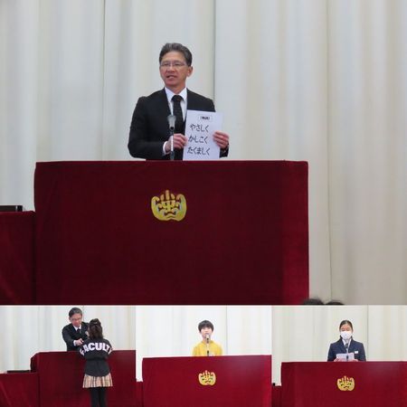 その後、校長挨拶では、卒業式での児童生徒の整然とした様子や工事期間中の不便な中でもいつも通りの姿で学習に取..