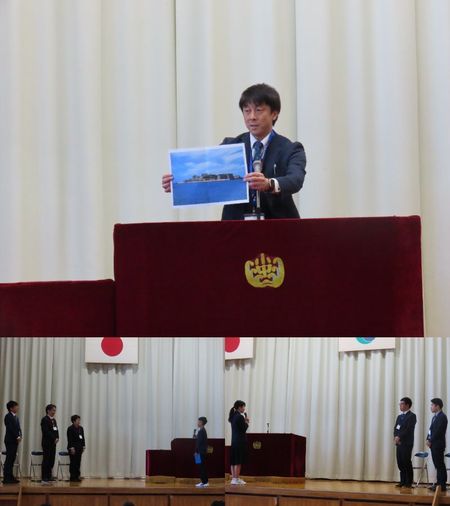 校長挨拶では、先日J1への昇格を決めたⅤ・ファーレン長崎を例に出し、「リーダーが代われば組織が変わる」ことについて話がありました。