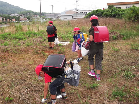 - 6月22日(木)にクリーン作戦を行いました。各地区ごとにまとまってごみを拾いながら登校しました。教職員も地区ごとに分かれて、一緒に活動しました。子どもの拾うごみの量ですから美化とまではいきませんが、子どもたちの地域の美化意識を高める活動にはなったと思います。