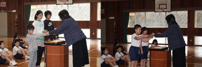 12月17日、伝達表彰を行いました。全校児童30名ですが、多くの児童が表彰されることを大変うれしく思います。表彰された児童は、大きな返事をして賞状をもらっていて、大変立派でした。また、表彰されなかった児童も、それぞれの作品づくりでよくがっばっていました。表彰された児童も、されなかった児童にも、大きな拍手を贈りたいです。